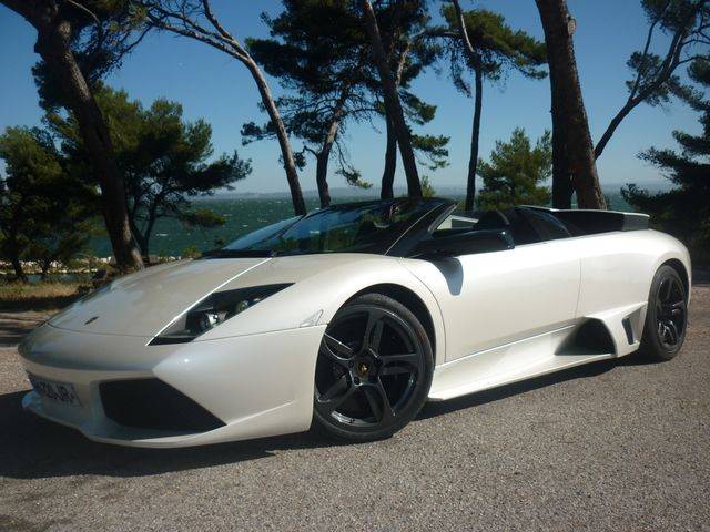 Cabriolet Lamborghini Murcielago LP 640 ROADSTER d'occasion à vendre dans le 13 : BLANC NACREE CUIR NOIR SURPIQURES BLANCHES CARBONNE JANTES HERMERA GPS COULEUR TACTILE PNEUS REVISION EMB RECENTS.