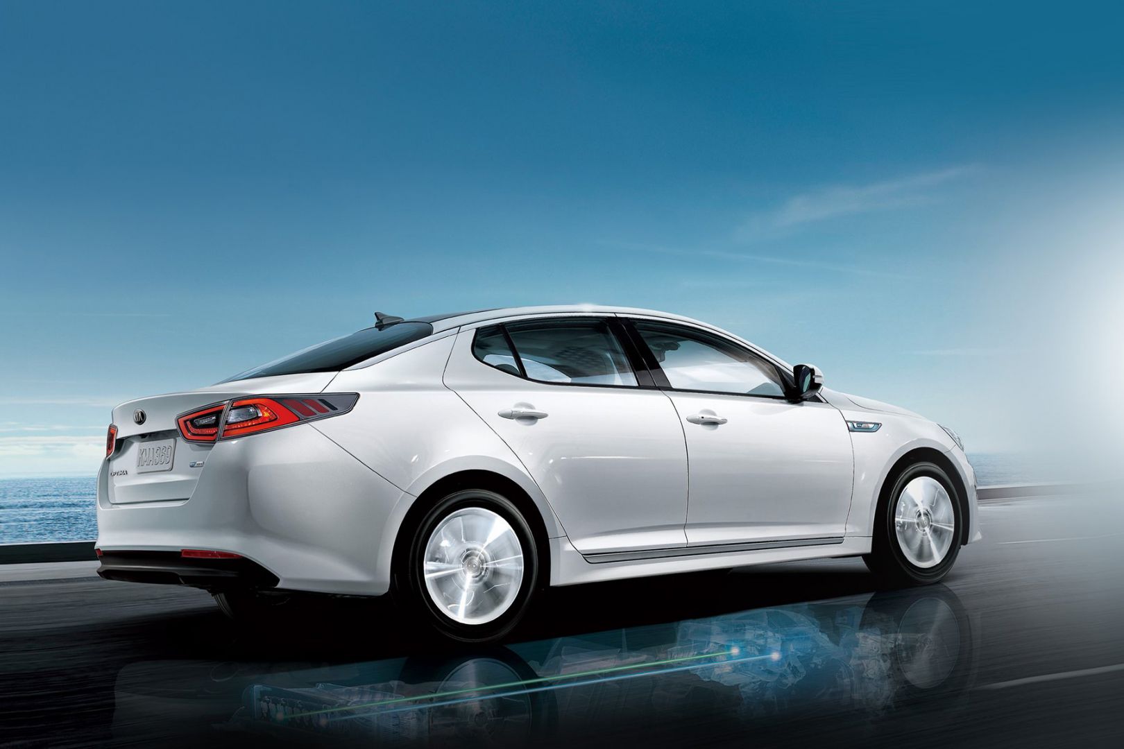 La Kia Optima Hybride est rechargeable avec son moteur électrique couplé à un moteur à combustion à essence GDI de 2,0 l pour une puissance de 154 cv.