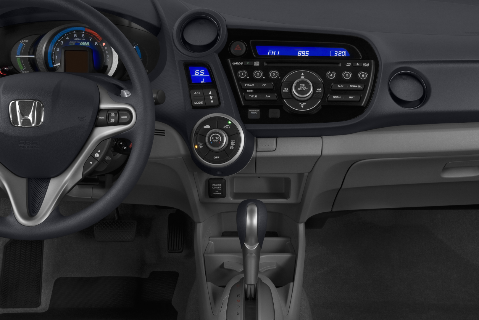 SUr une configuration claqqiue, le moteur électrique (10,3kw/ 14 ch / couple max 78,5Nm) vient s'emboîter sur le moteur essence 1.3 i-VTEC (88 ch / couple max 121 Nm). L'insight ne fonctionne en tout électrique qu'en de rares occasions : à faible vitesse et dans les descentes. C'est le système IMA (Integrated Motor Assist) d'Honda une sorte d'assistance électrique intégrée.